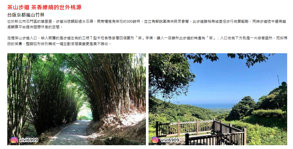 13:00茶山步道→14:30金山老街→16:00一太e衛浴觀光工廠→約18:00返抵林口園區
