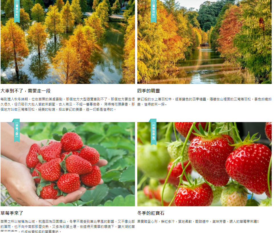 ★大湖草莓季開跑啦~果園採草莓 ☆藏在山中的絕美秘境~三灣落羽松 ★草莓之鄉~大湖草莓文化館
